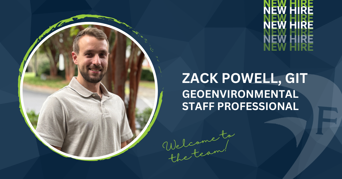 Please join us in welcoming Zack Powell, our new Geoenvironmental Staff Member! Zach graduated from Appalachian State University with a degree in Quantitative Geoscience, and has seven years of experience working in the Triangle. When he’s not working, you’ll probably find him climbing rocks, listening to rock music, or sharing his rock knowledge. This October, Zach will be sitting for his Professional Geologist license exam—wish him luck!