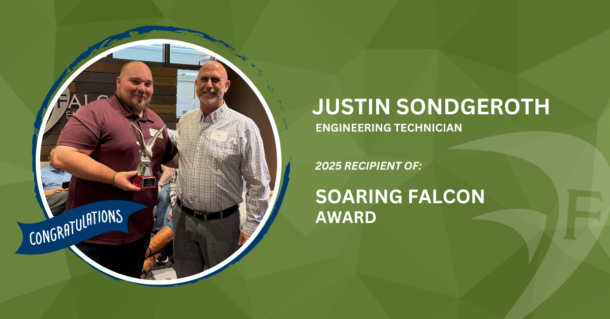 Each year we present the Soaring Falcon Award to an employee who goes above and beyond in their role. This year we were pleased to present the award to Justin Sondgeroth. Justin has played a pivotal role in our ongoing work at RDU Airport, serving as the Lead Technician and helping to manage the field team.